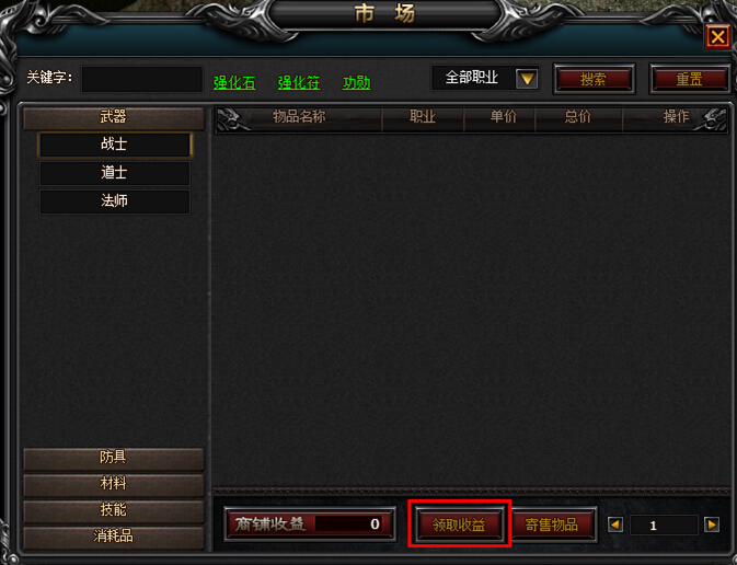 玩家可以点击领取,将寄售卖出物品得到的元宝给领取出来